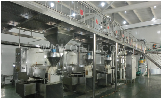 (4)茶籽油精煉 毛油通過精煉除膠質、酸價、色素等影響油脂質量的雜質,除去雜質保證油脂質量,也可提高油脂保質期。 茶籽油含有10%左右的飽和脂肪酸,通過冬化脫蠟的方式可將飽和脂肪酸的含量大大降低,從而提升油脂品質,大幅度提高茶籽油中的不飽和酸含量,可產(chǎn)出更為高品質的茶籽脫蠟油,提高生產(chǎn)企業(yè)的經(jīng)濟效益。 我公司可提供間歇精煉工藝、半連續(xù)精煉工藝、全連續(xù)精煉工藝。